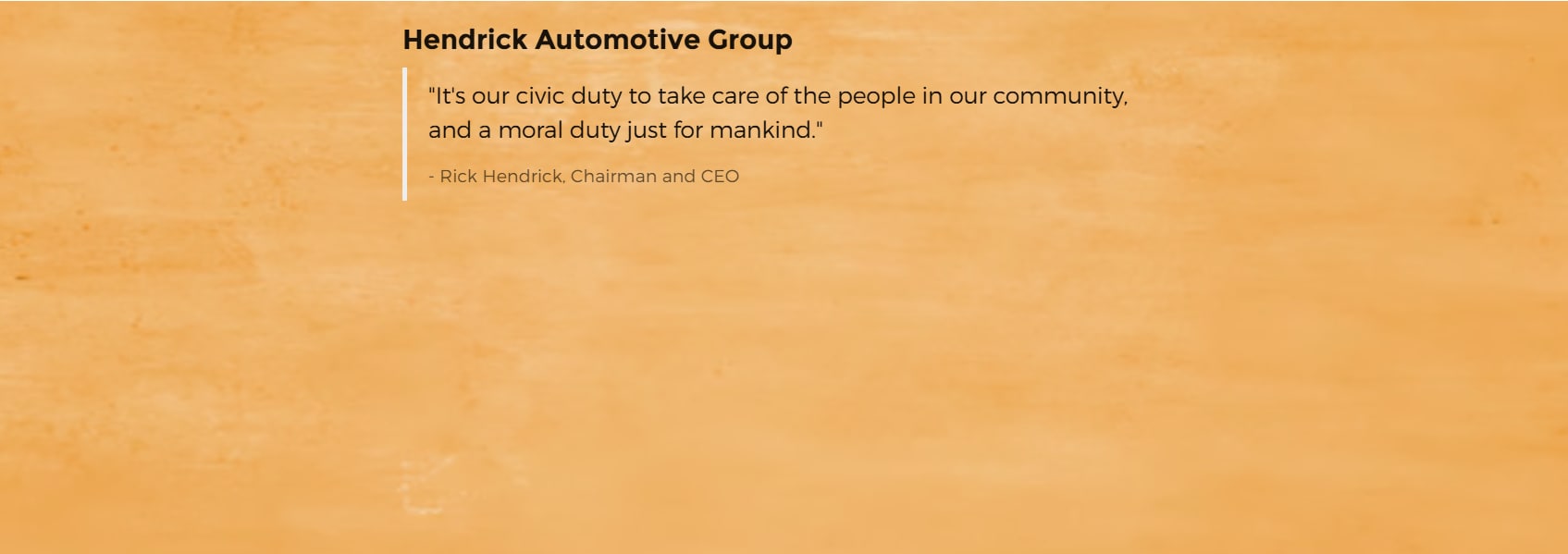 Hendrick Cares is the name of our corporate social responsibility program putting into action the company's legacy of caring for others and commitment to teamwork.